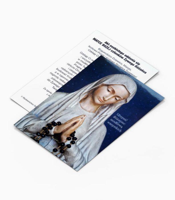 Obrazek zawiera tekst modlitwy; Akt Osobistego Oddania się Matce Bożej Członków Żywego Różańca. Format obrazka to 9 x 14 cm.