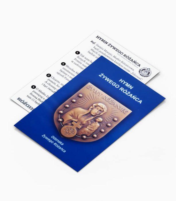 Zatwierdzona przez Zarząd Żywego Różańca wraz z Konferencją Moderatorów Diecezjalnych stanowi zewnętrzny znak przynależności do stowarzyszenia Żywego Różańca. Wymiary: 1,8 x 3 cm, przypinana do ubrania na agrafkę.